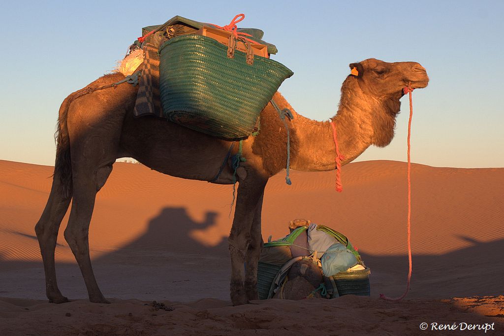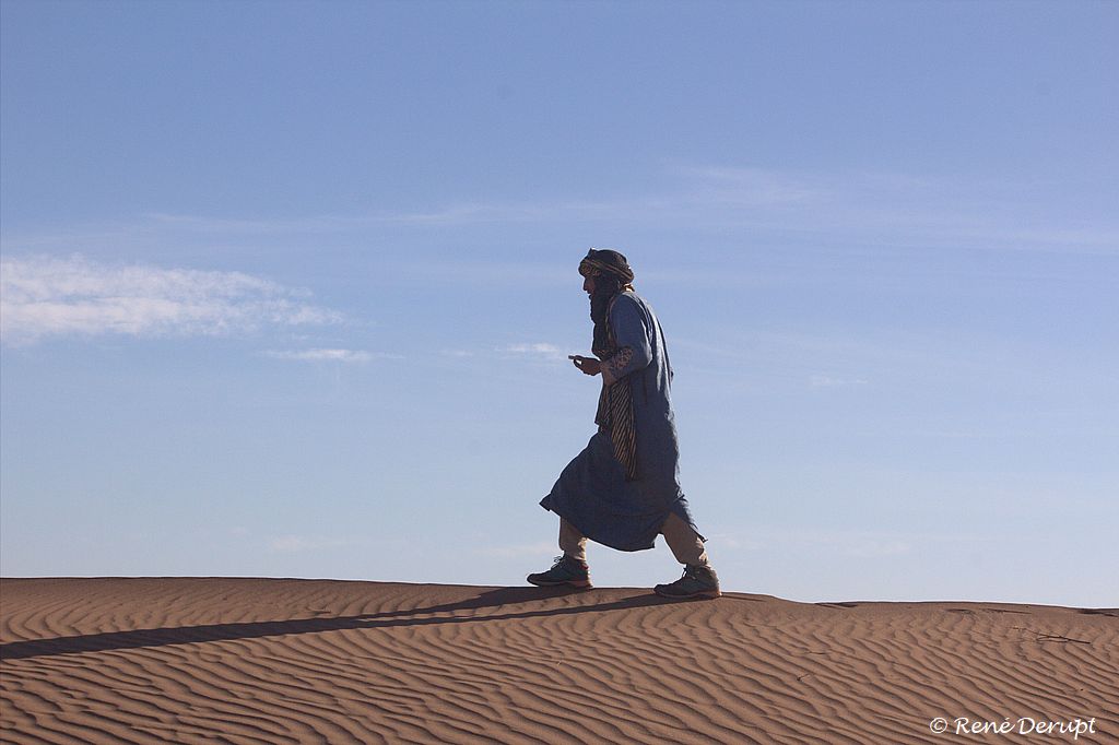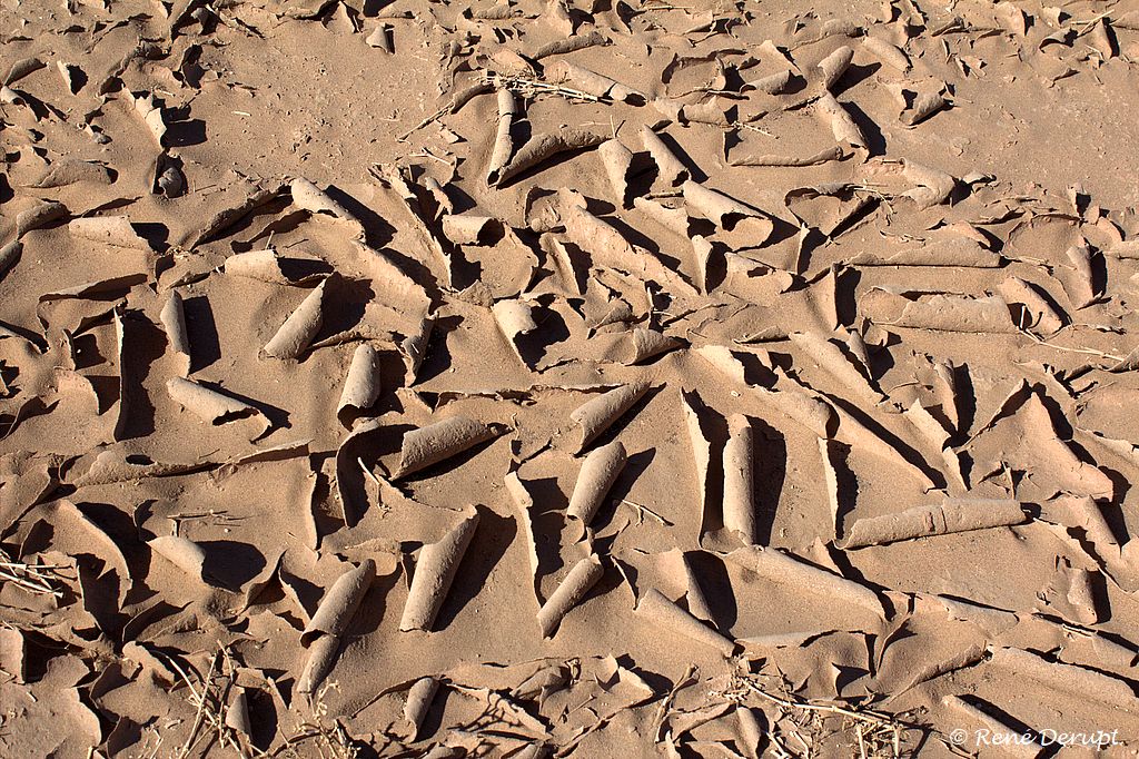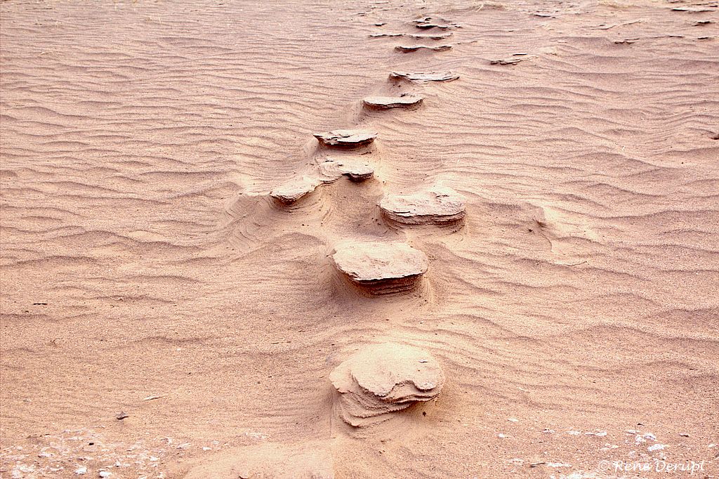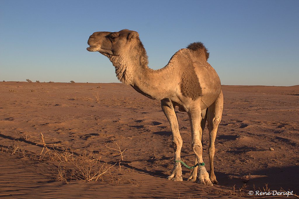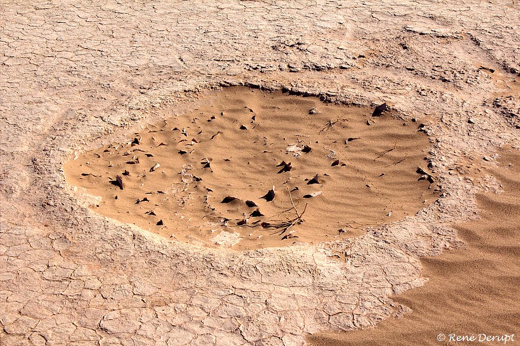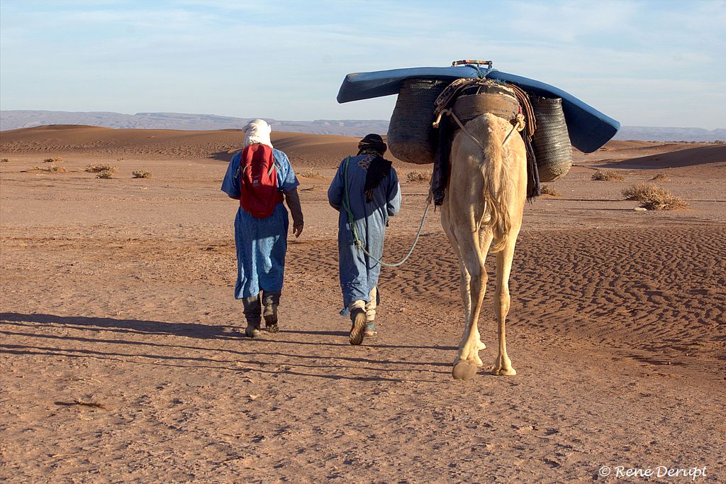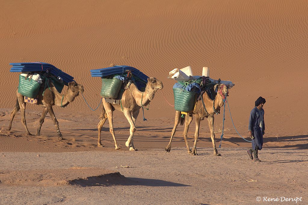 Pendant le voyage, l’immobile et le silence de l’environnement sont rois. Seul les humains en transit avec les fidèles dromadaires, véritables partenaires de survivance, sont en mouvement.. Il est rare de voir des êtres vivants habitants ces contrées hostiles. Seul leurs traces sur le sable sont présentes pour souligner l’existence de créatures vivants sur le sable chaud et aride.