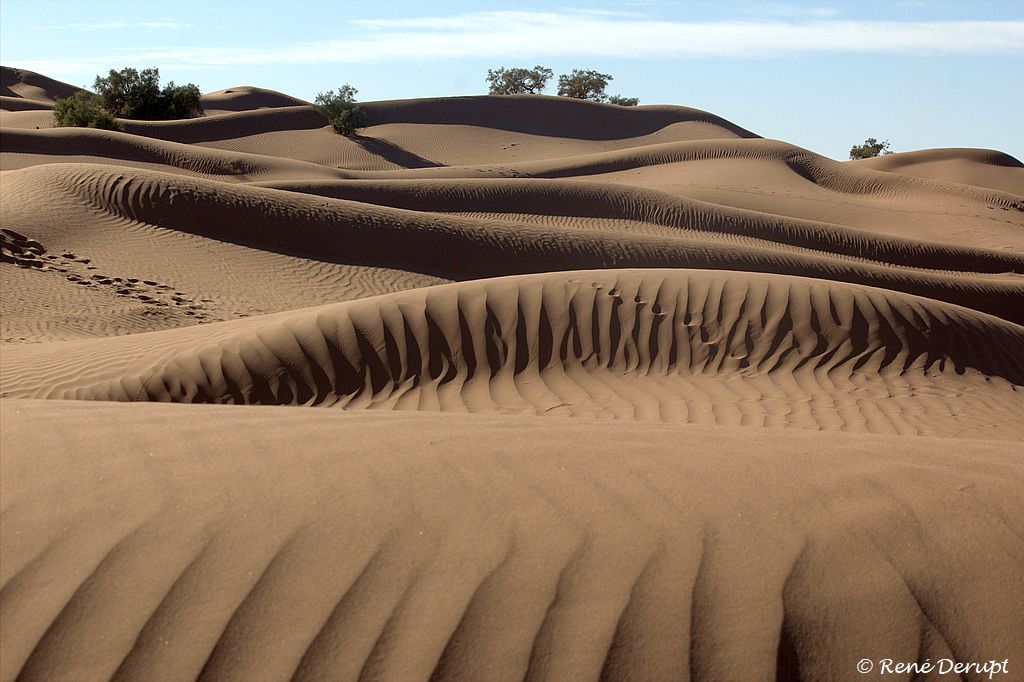 Dès l’entrée et pendant les déambulations dans les dunes de sables aux multiples couleurs ocres…Les pieds dans le mouvant, les yeux vers les ciels bleu azur. La monotonie n’est jamais au rendez vous, les couleurs et les formes sont toujours différentes